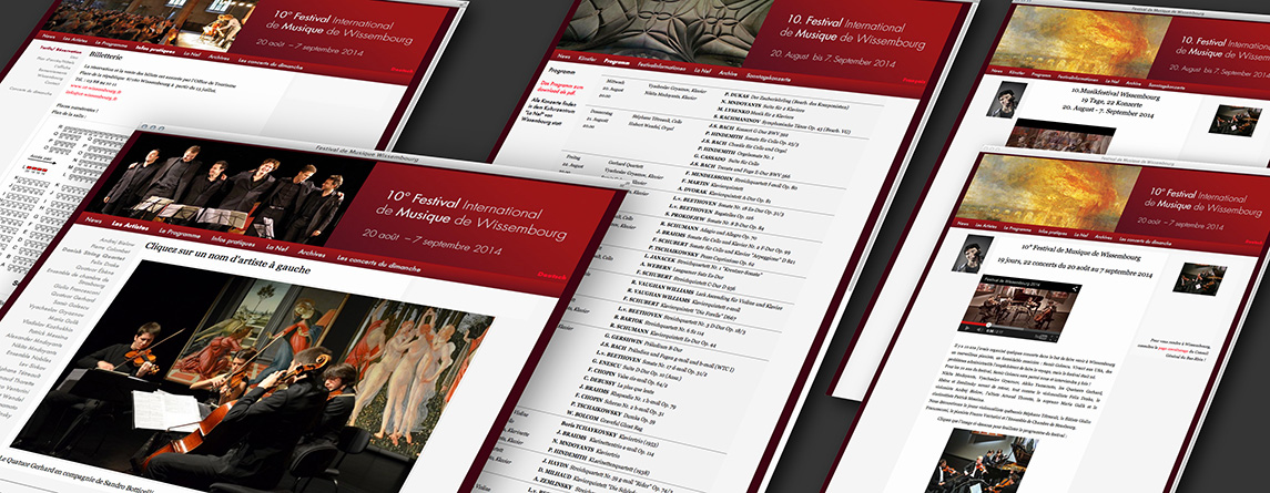 Das Musikfestival für klassische Musik in Wissembourg findet jährlich Ende August/Anfang September statt. Amides entwickelte den zweisprachigen Internetauftritt, dessen weitere Pflege vom Kunden selbst vorgenommen wird. Der Auftrag umfasste auch die Gestaltung von Großflächenwerbung, Citylightplakaten (Raum Strasbourg - Karlsruhe) und Programmflyer für das Festival.