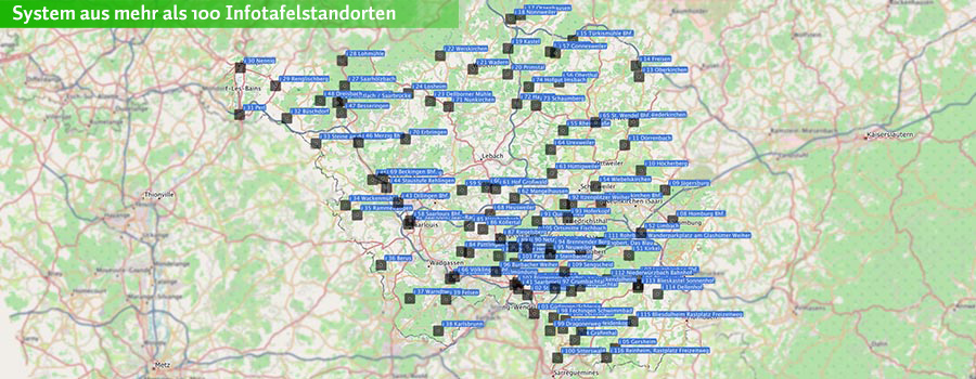 - Mehr als 100 Tafelstandorte, über 600 km Wegenetz