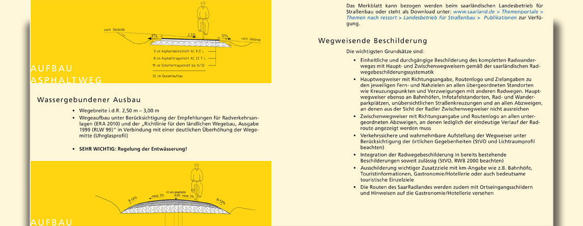 Die Instandhaltung des Radwegenetzes und der dazugehörigen Anlagen wird von den Landkreisen und Kommunen übernommen. Um landesweit die notwendigen Standards einhalten zu können, wurde dieser technische Leitfaden entwickelt.